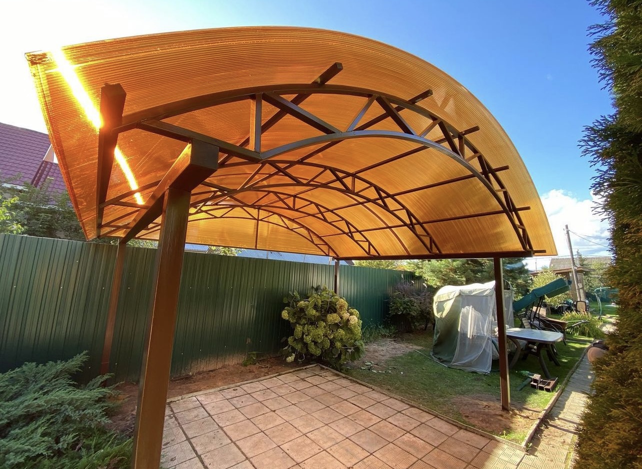 Наши навесы из поликарбоната в Волоколамске и Московской области используются для оснащения: