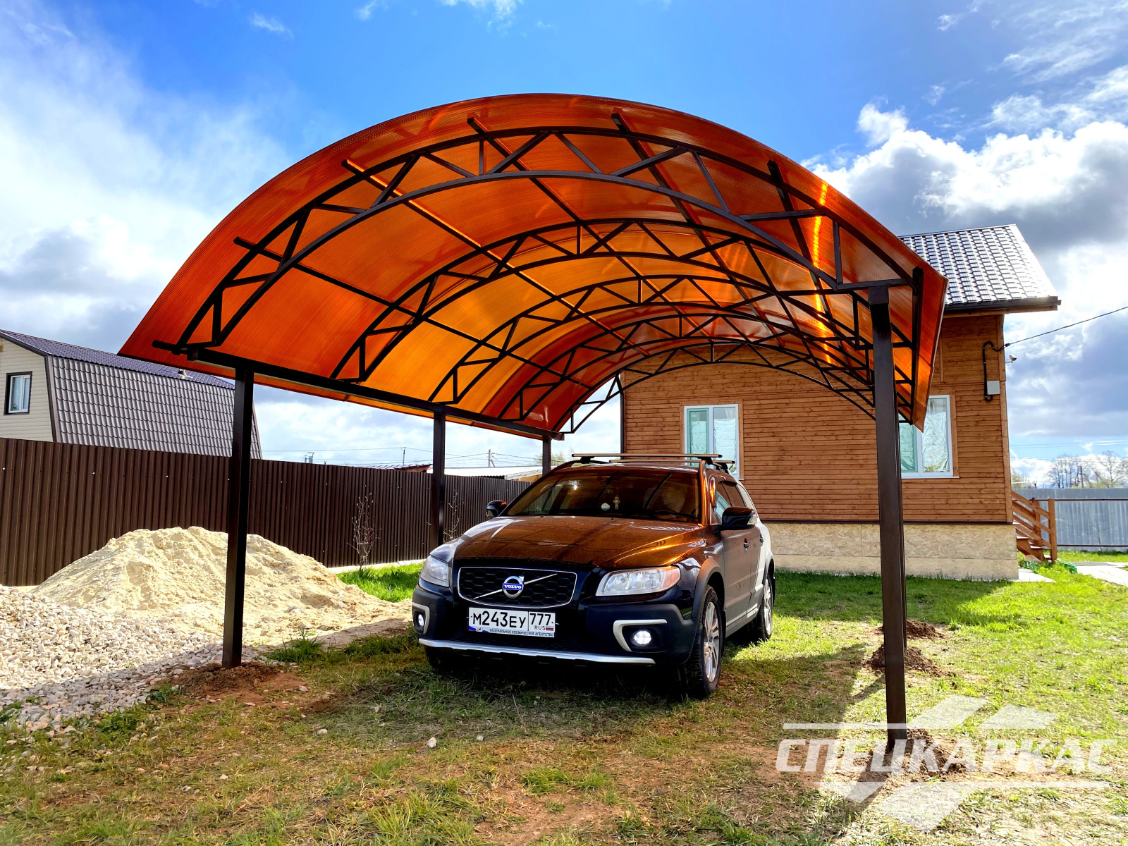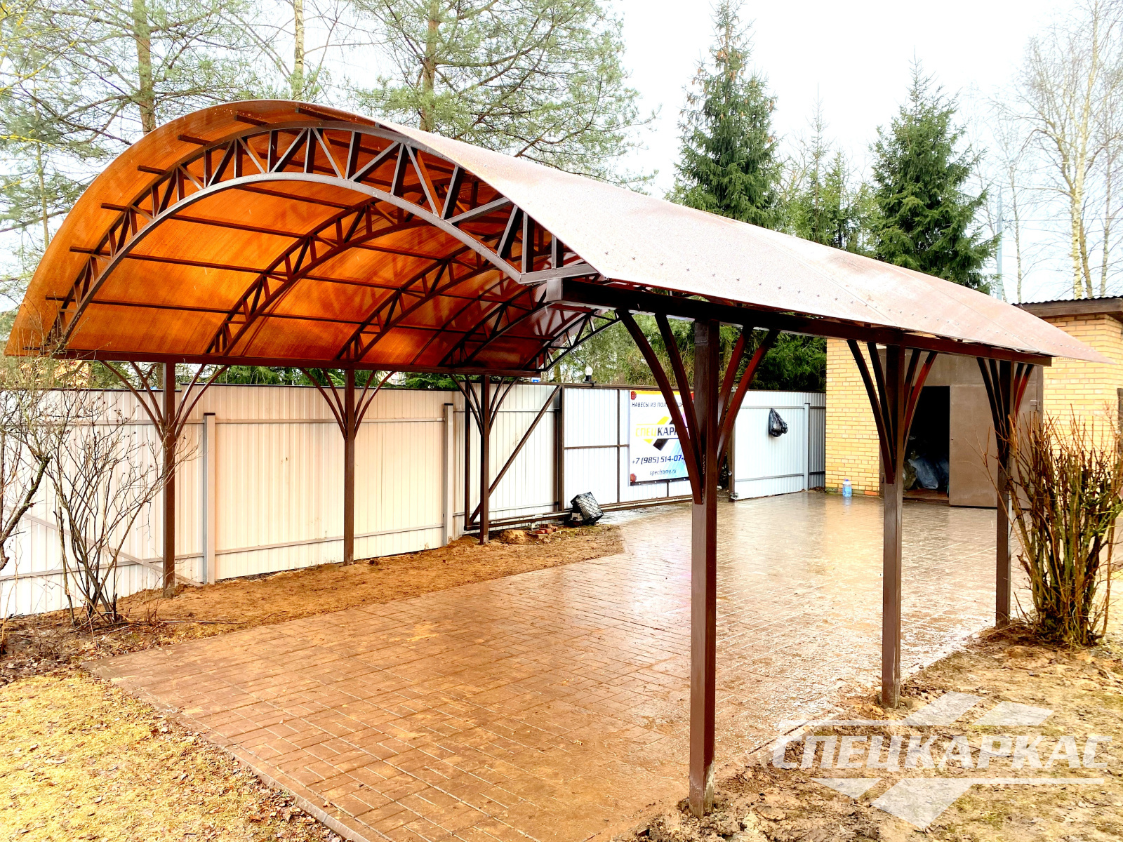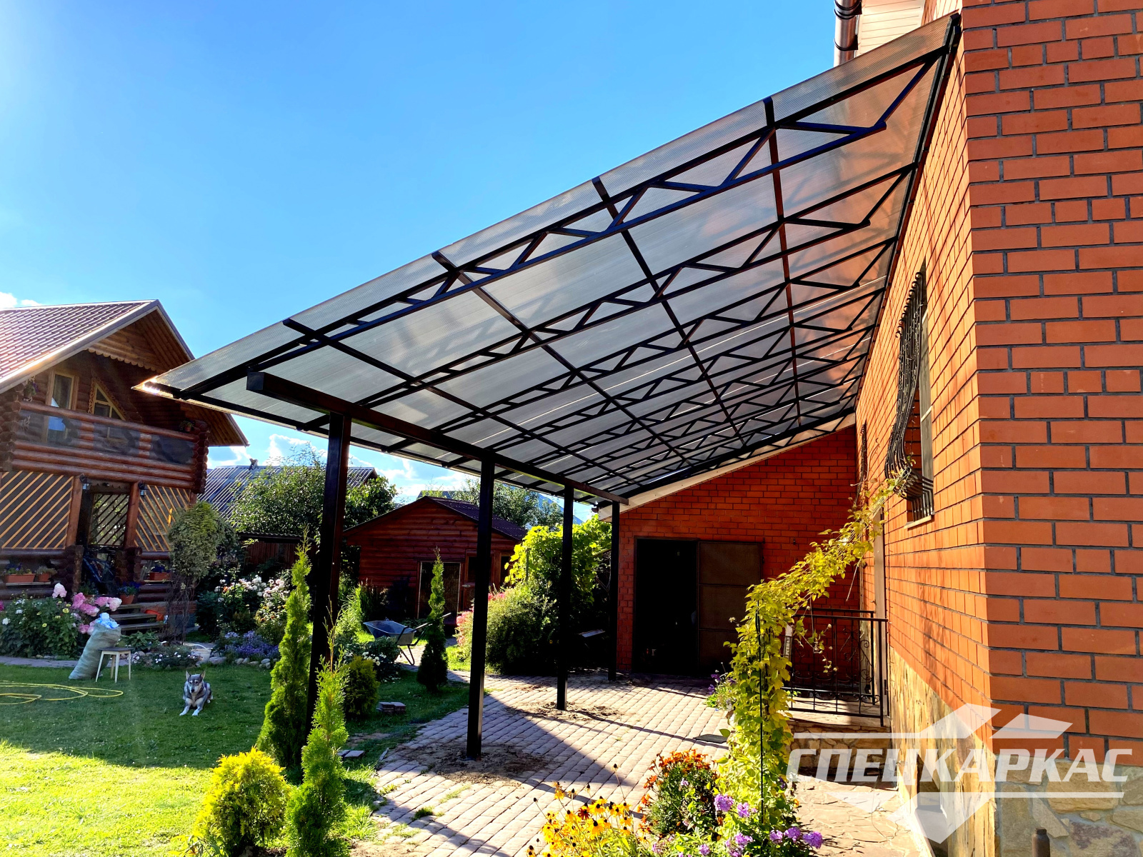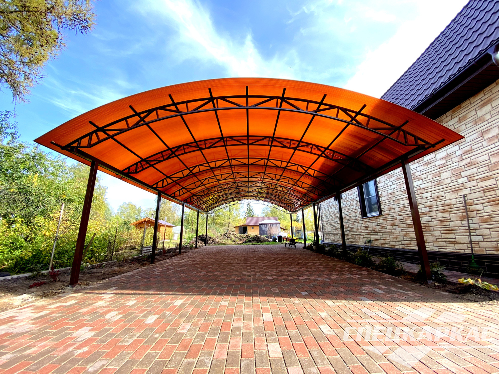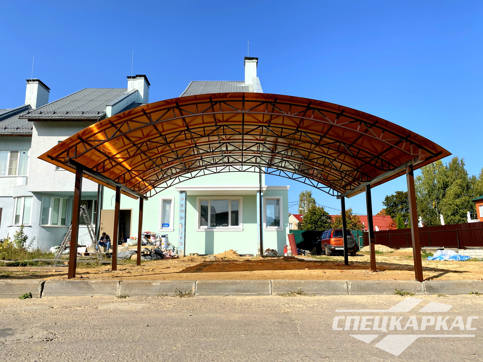 Навес из листов поликарбоната способен стать настоящей «изюминкой» частного дома и приусадебной территории. Полупрозрачные сооружения эстетичны и надежны. Их устанавливают всего за 1-2 дня, за ними легко ухаживать – достаточно чистой воды и неабразивного средства. На первый взгляд кажется, что без такой конструкции вполне можно обойтись. Но стоит купить навес из поликарбоната от компании «Спецкаркас» – и жизнь станет намного проще и комфортнее. Ваше авто больше не будет ржаветь под дождем, крыльцо останется чистым даже в снегопад, на участке появится уютная зона отдыха в кругу друзей и близких.