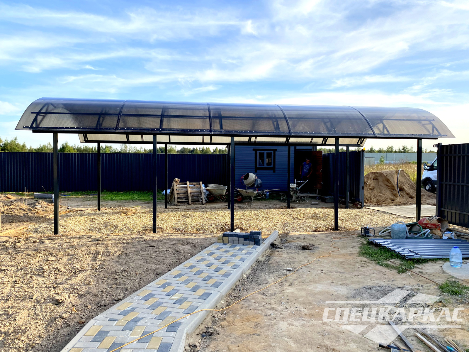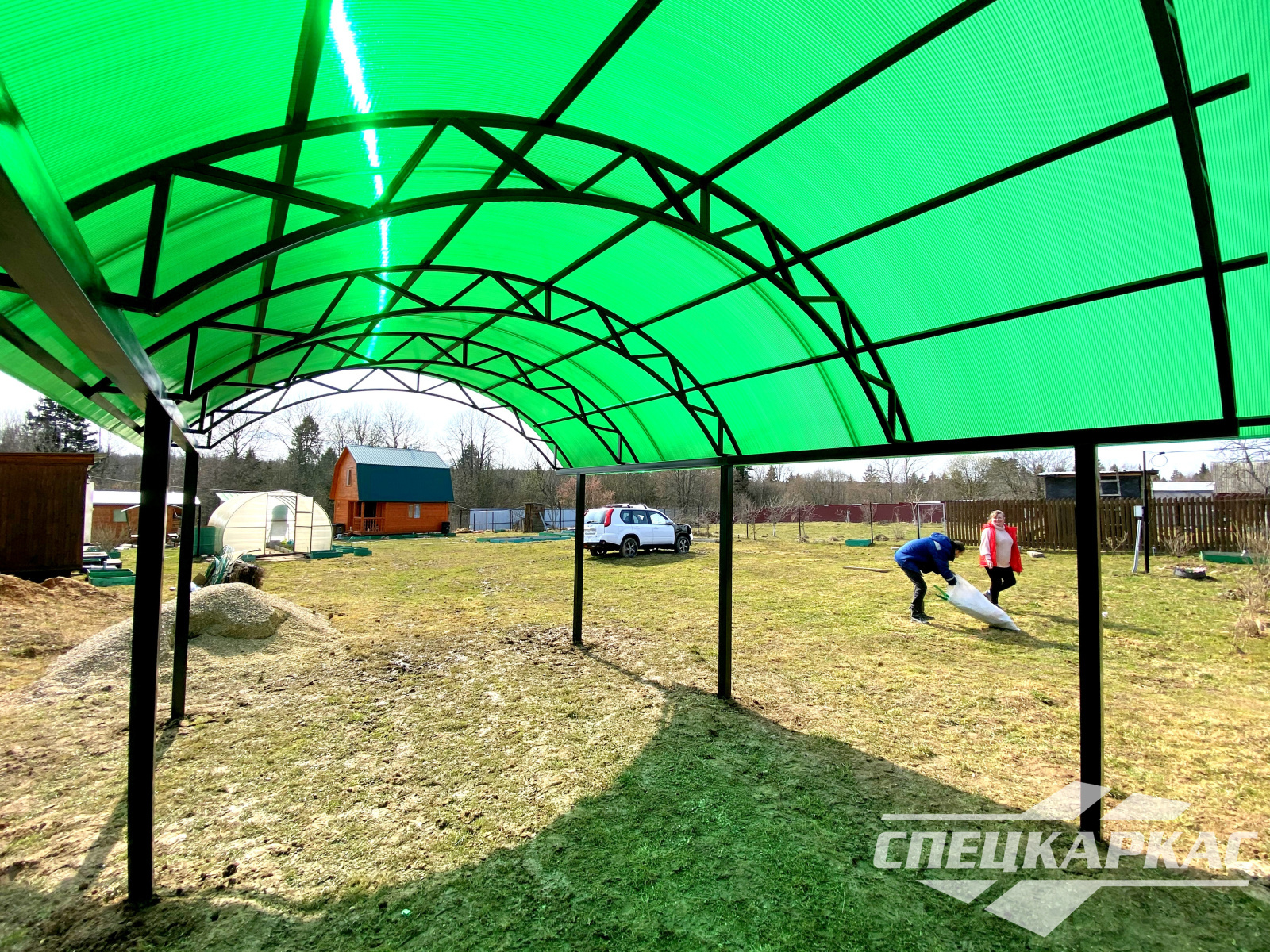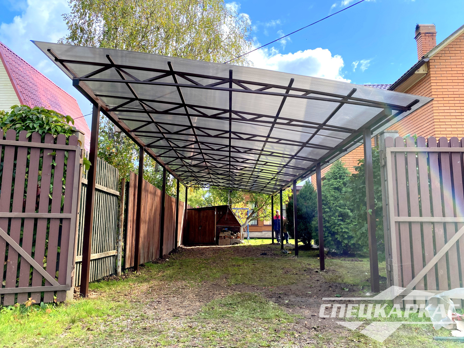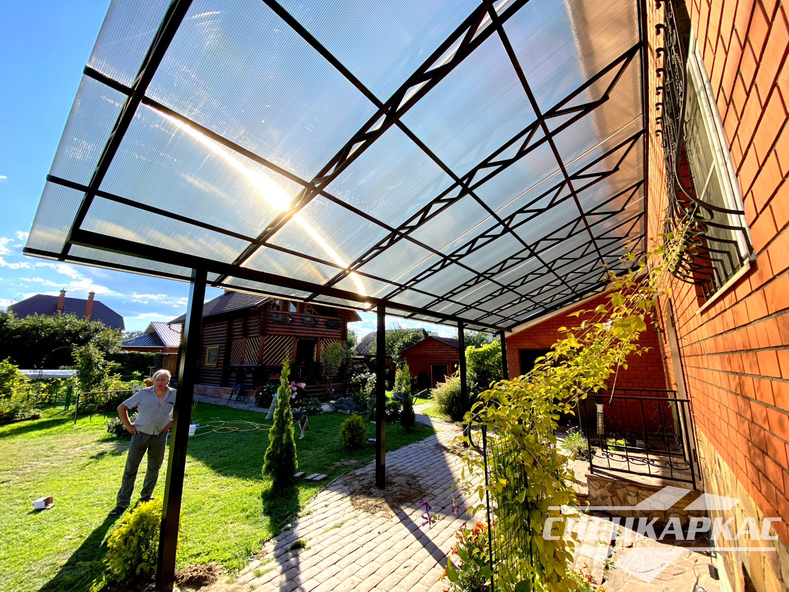 Навес из листов поликарбоната способен стать настоящей «изюминкой» частного дома и приусадебной территории. Полупрозрачные сооружения эстетичны и надежны. Их устанавливают всего за 1-2 дня, за ними легко ухаживать – достаточно чистой воды и неабразивного средства. На первый взгляд кажется, что без такой конструкции вполне можно обойтись. Но стоит купить навес из поликарбоната от компании «Спецкаркас» – и жизнь станет намного проще и комфортнее. Ваше авто больше не будет ржаветь под дождем, крыльцо останется чистым даже в снегопад, на участке появится уютная зона отдыха в кругу друзей и близких.