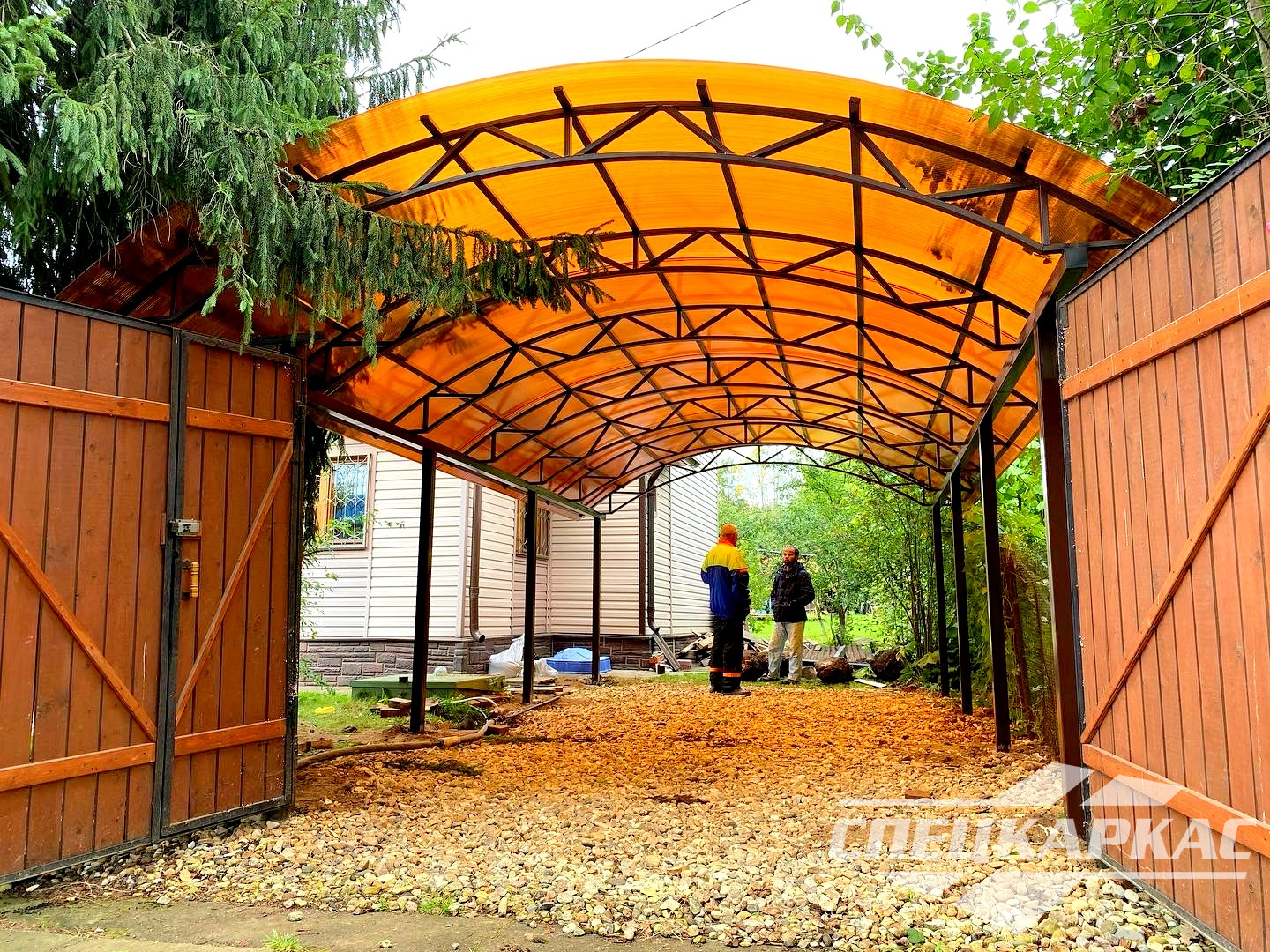 Производственная фирма «Спецкаркас» выполняет полный спектр работ, связанных с изготовлением и установкой конструкций из поликарбоната.