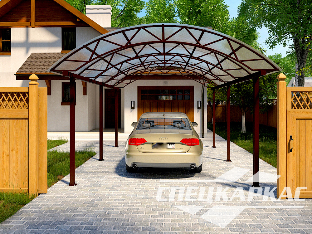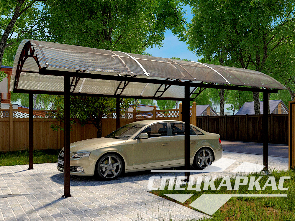Прочное покрытие из поликарбоната надежно защищает поверхность автомобиля от непогоды. Поликарбонат устойчив к повреждениям и химикатам, что гарантирует длительный и беспроблемный эксплуатационный период.