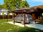 • Навес может комплектоваться следующими вариантами кровли: сотовый поликарбонат, монолитный поликарбонат,  профнастил, металлочерепица, мягкая кровля